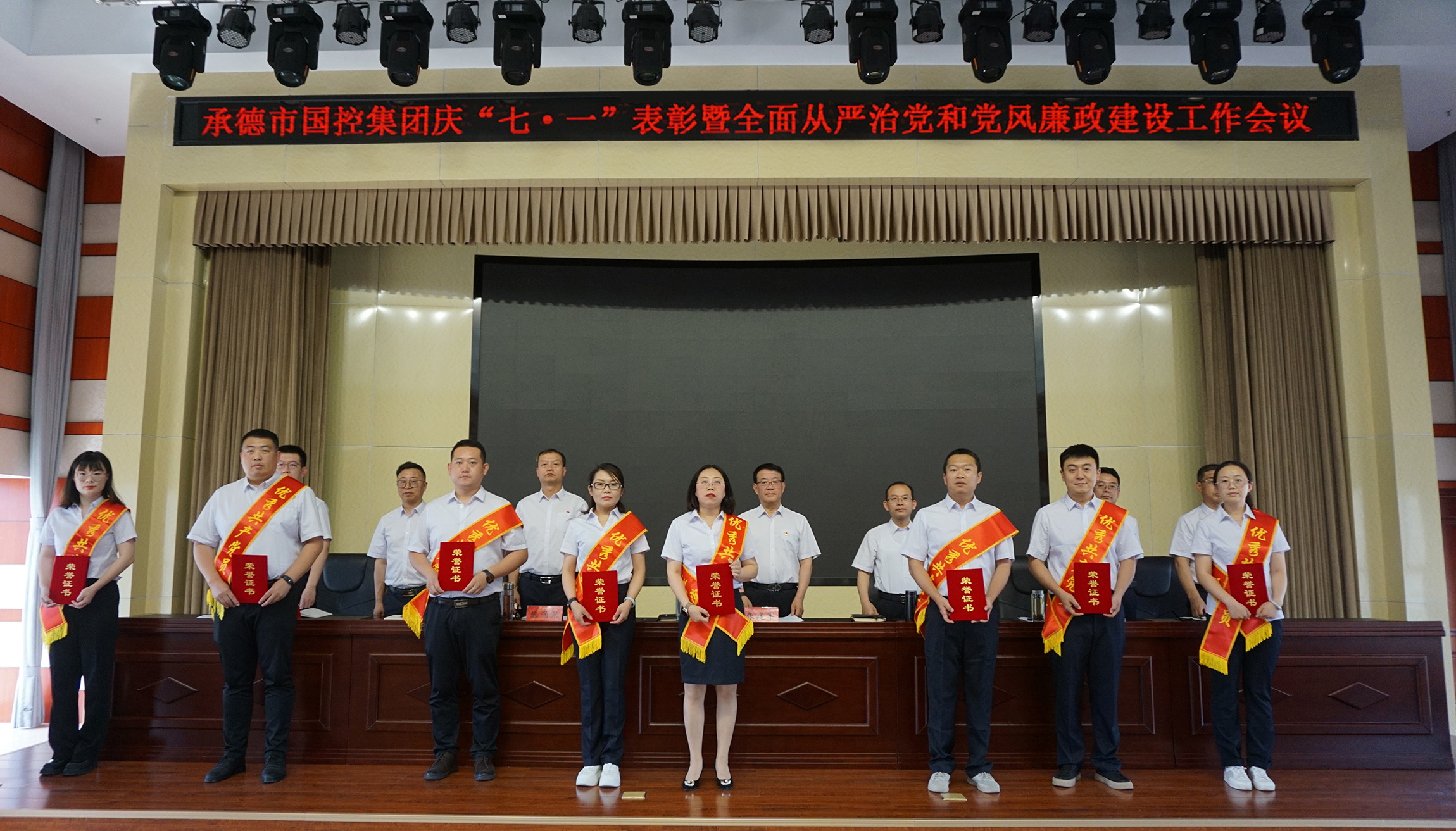 表彰大會氣氛隆重熱烈,大會在全場起立高唱國歌聲中開幕。黨委委員、副總經(jīng)理焦俊良宣讀了《關(guān)于表彰集團公司2023年度優(yōu)秀共產(chǎn)黨員和優(yōu)秀黨務(wù)工作者的決定》,與會領(lǐng)導向受到表彰的優(yōu)秀黨員和優(yōu)秀黨務(wù)工作者頒發(fā)了榮譽證書。